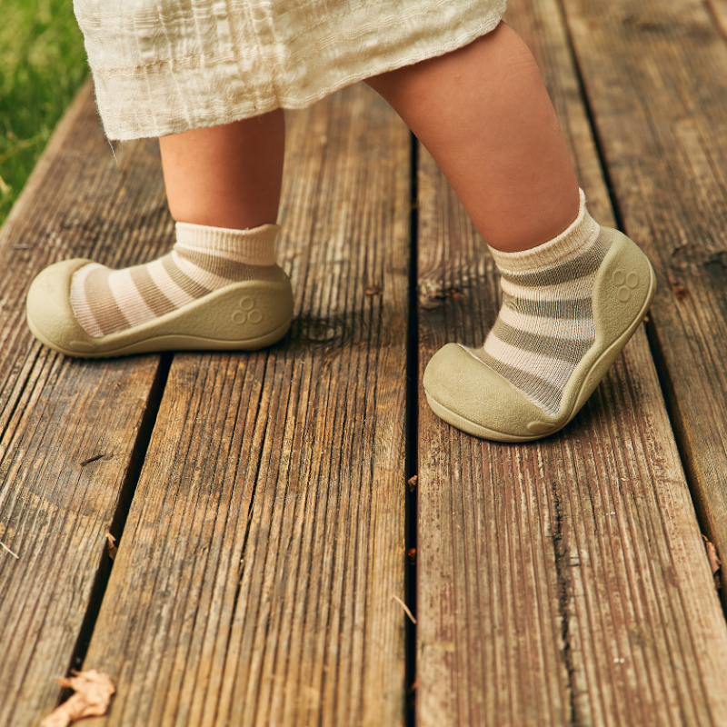 Walking barefoot allows infants to fully utilize the natural sensations of their soles and the range of motion in their toes, making it ideal for those just beginning to walk. However, in modern society, opportunities for babies to walk barefoot outdoors are limited. This necessity led to the creation of Attipas.