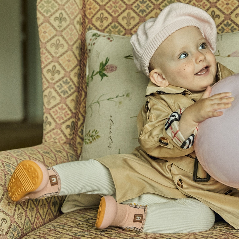 This unique series features a two-tone rubber sole and cozy cotton upper that looks just like tiny baby boots!
