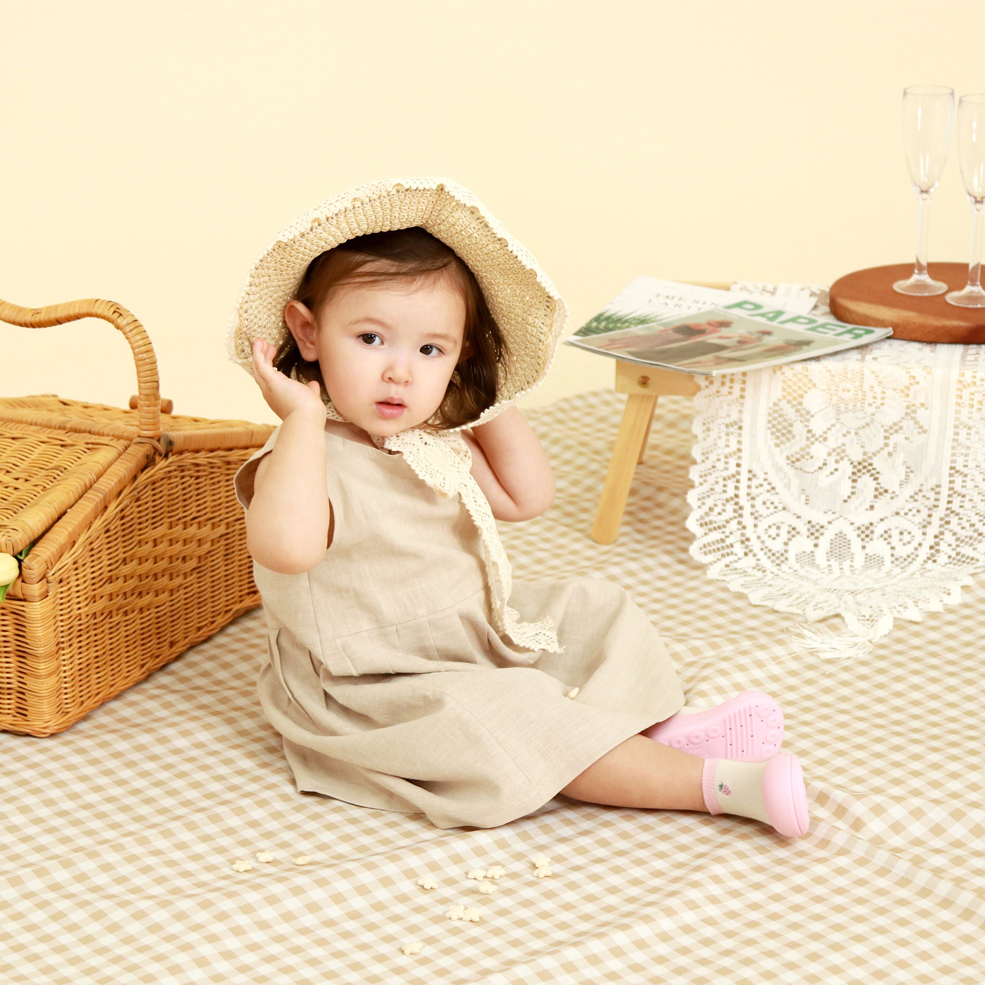 With delicately embroidered fruit details and a breathable bamboo fiber ankle sock, these shoes are ideal for sunny strolls, cozy indoor play, or stylish everyday wear.