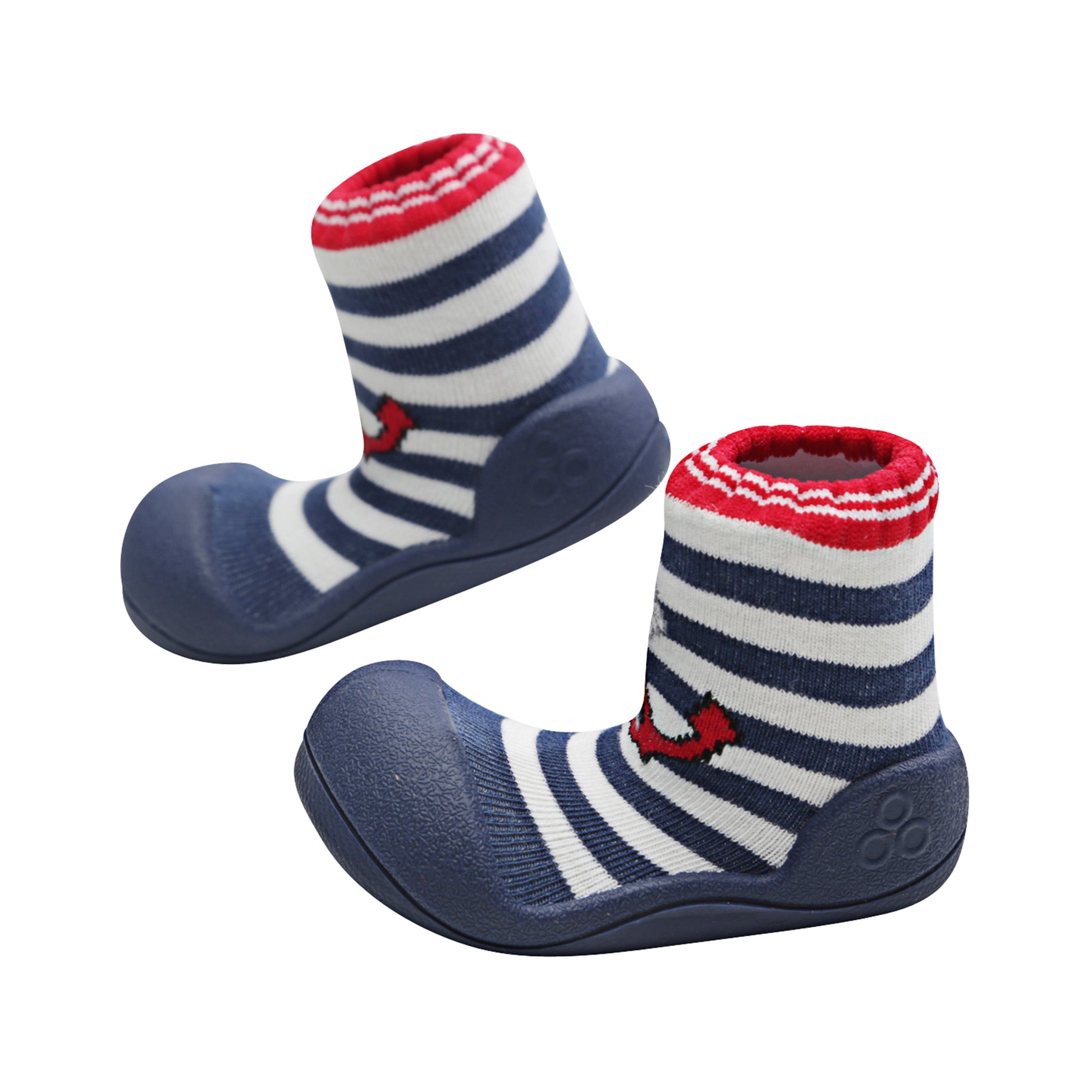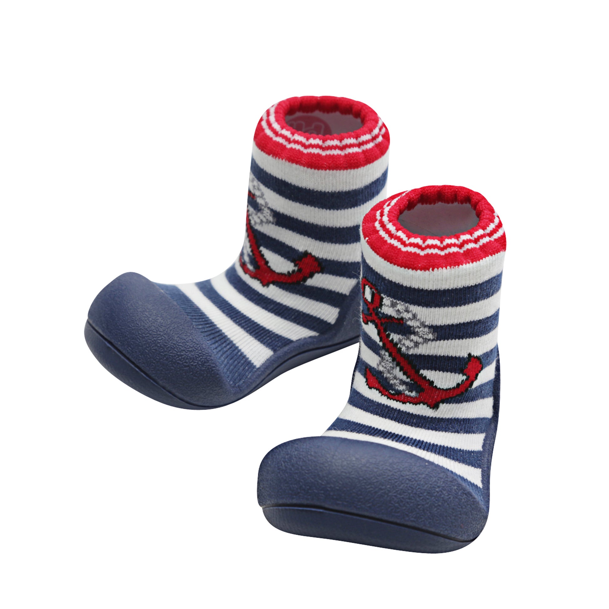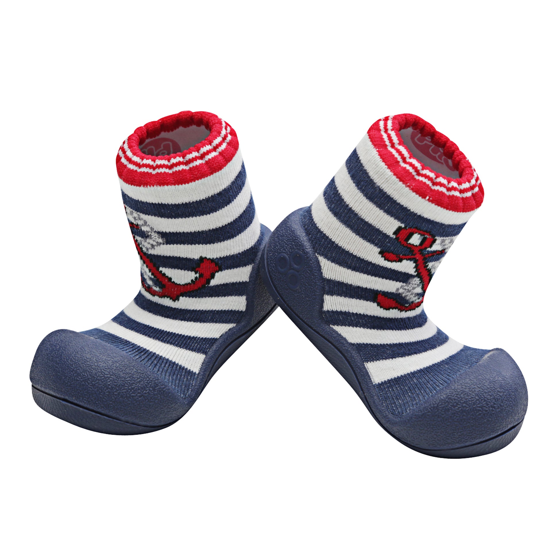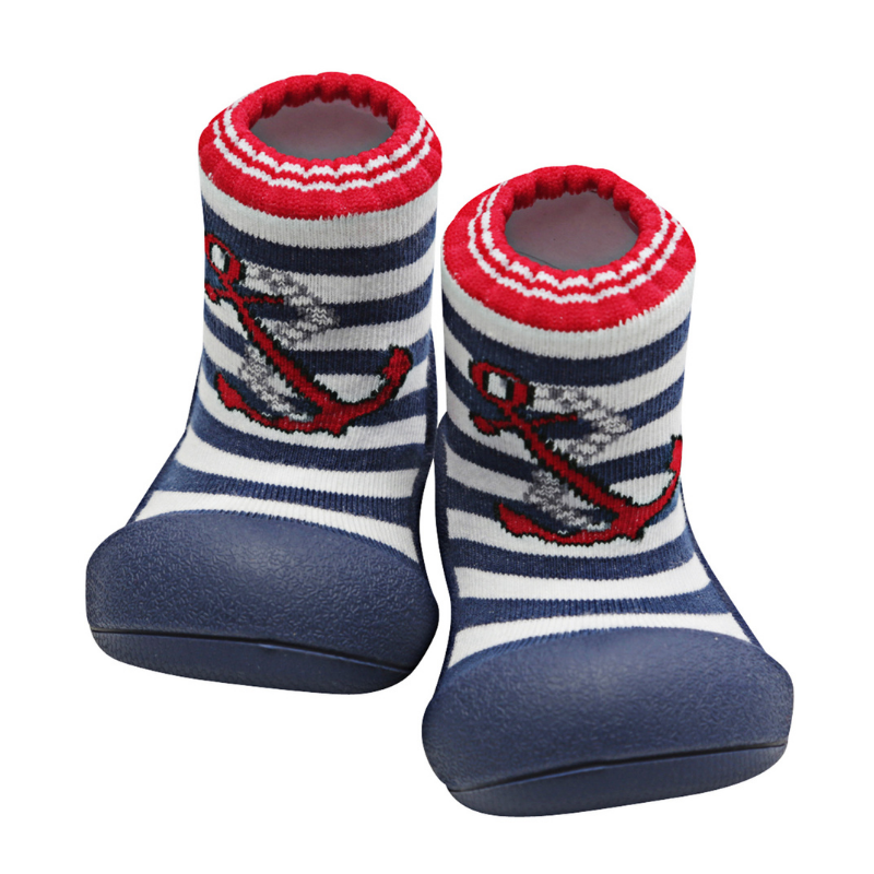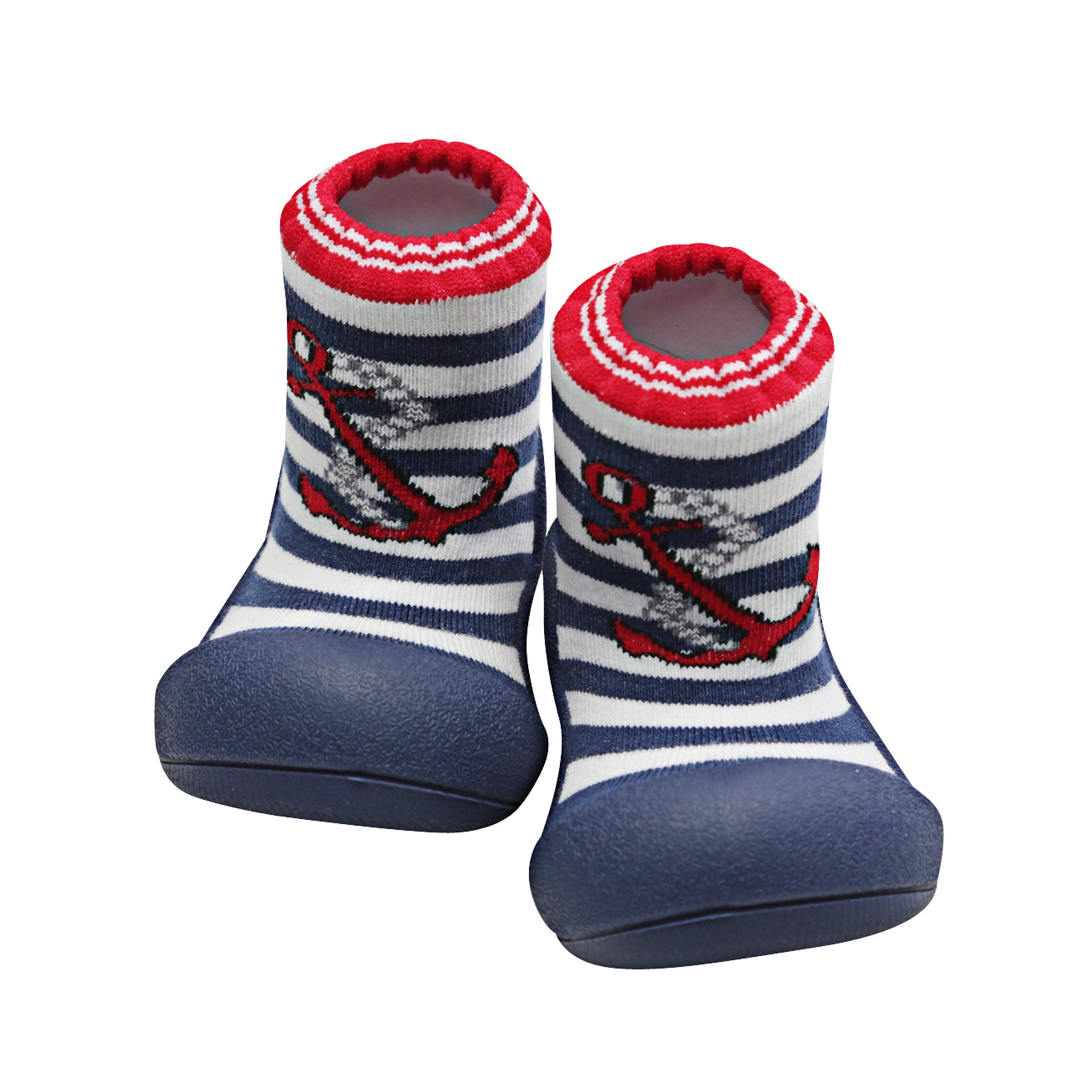- Marine Red – Navy sole, bold red anchor over navy & white stripes with red contrast cuff