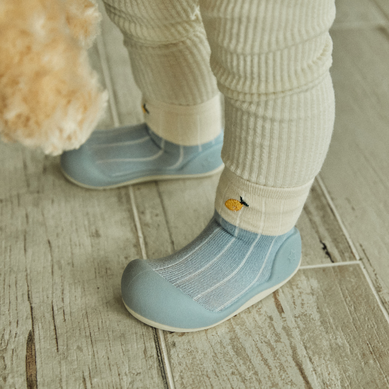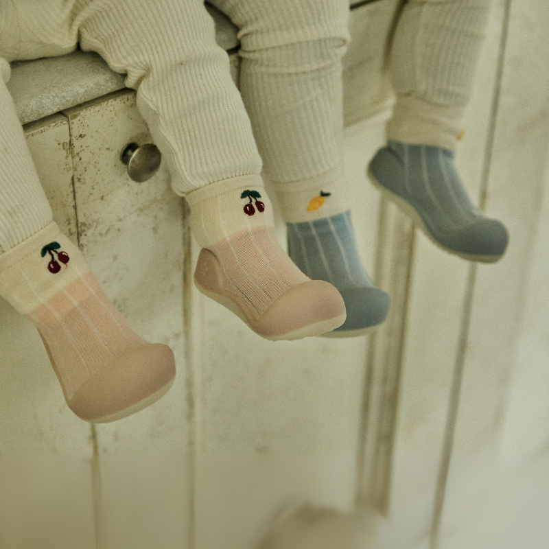 Fall in love with our charming collection of baby shoes, featuring sweet pastel-toned fruit embroidery that captures the essence of joy and cheerfulness. Each shoe in this delightful collection boasts a ribbed sock design to add a splash of color to the season, complemented by a two-tone sole that matches the sock’s color and an off-white base. The collection includes two models: the Cherry in white and pink, and the Lemon in white and blue.