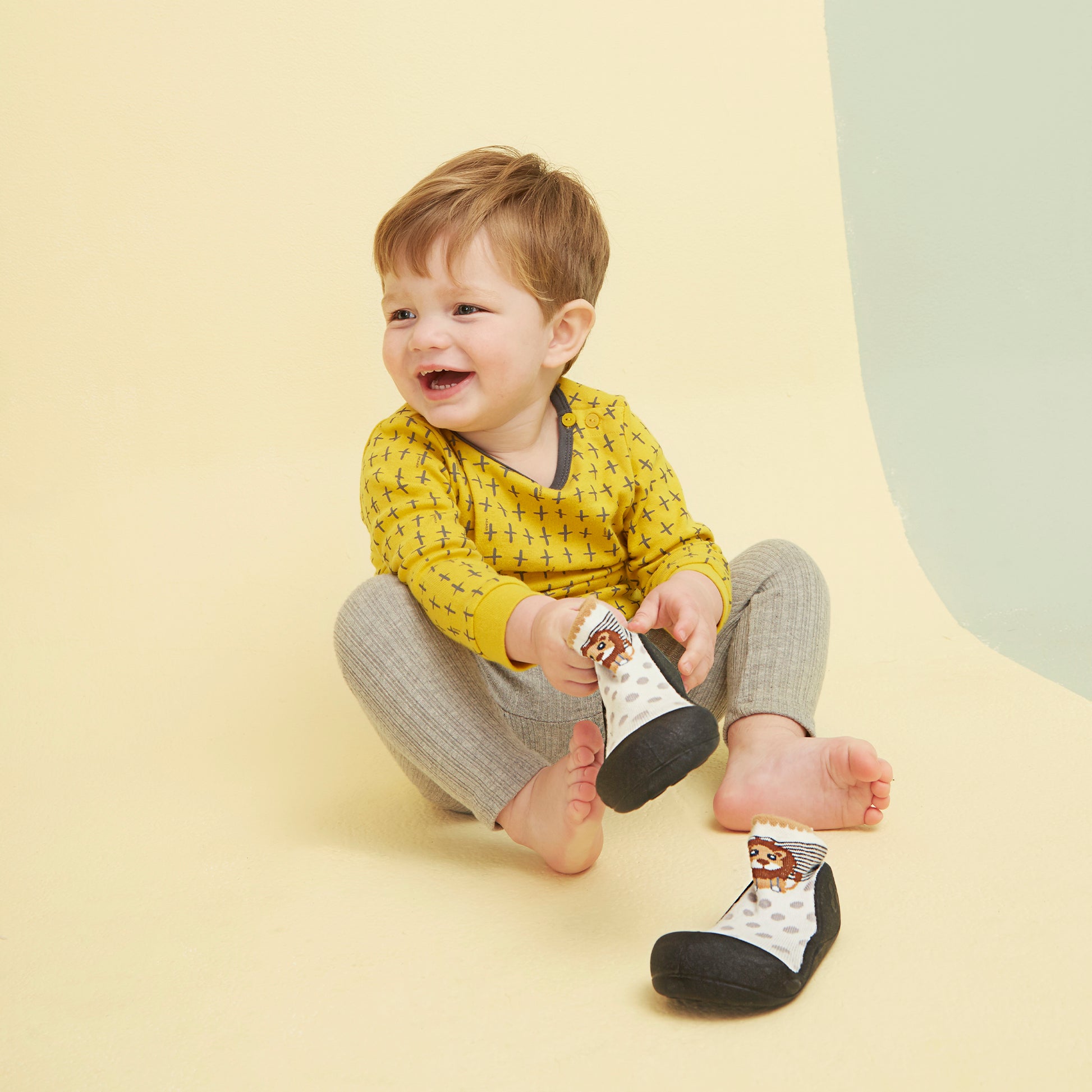 The non-slip sole and sock-like upper offer a perfect balance of safety and comfort—ideal for crawling, cruising, and first steps.